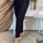 Elasztikus fekete nadrág bokáján kivágással és masnival