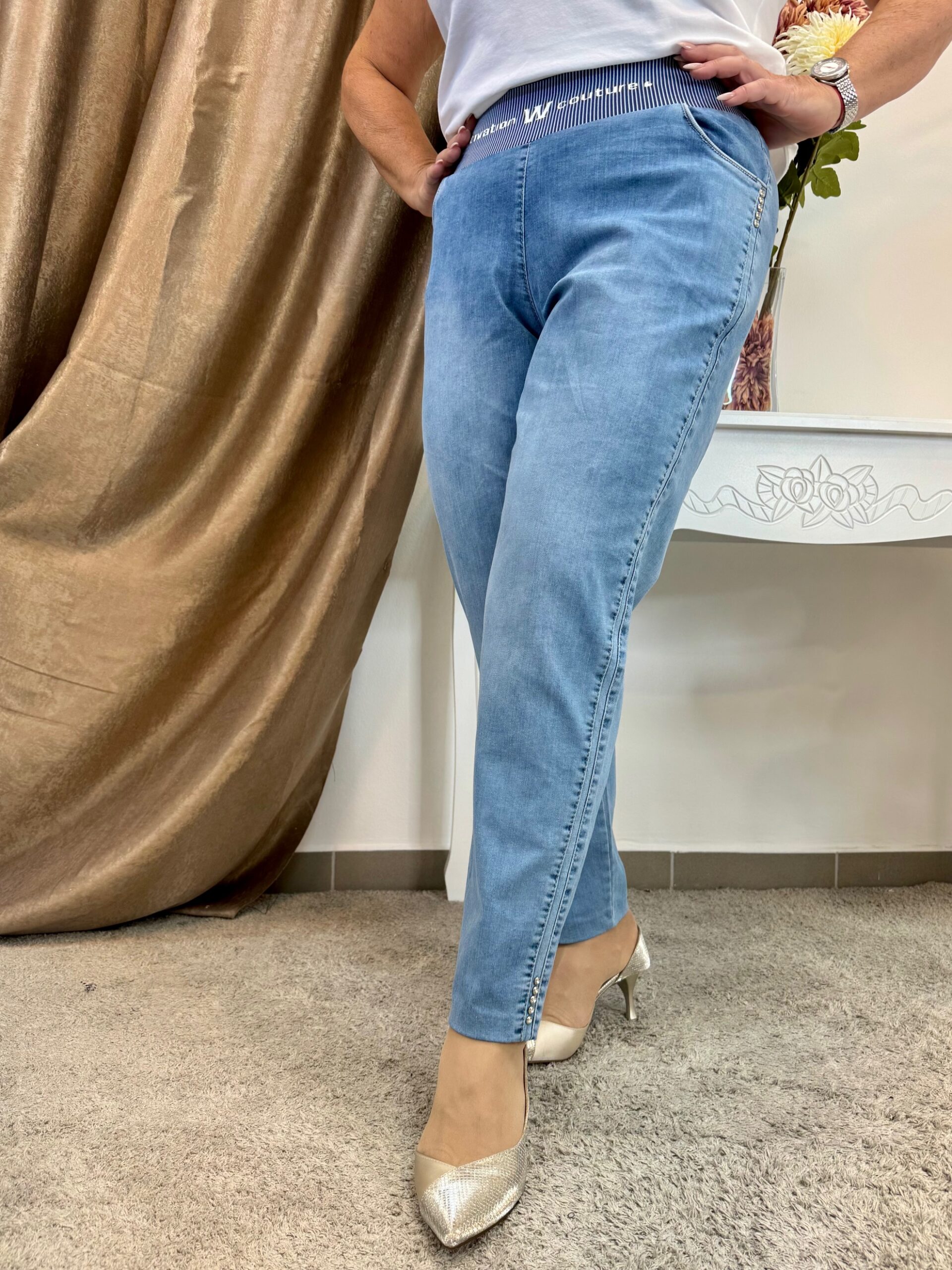 Világos, átmeneti vastagságú, letisztult farmernadrág