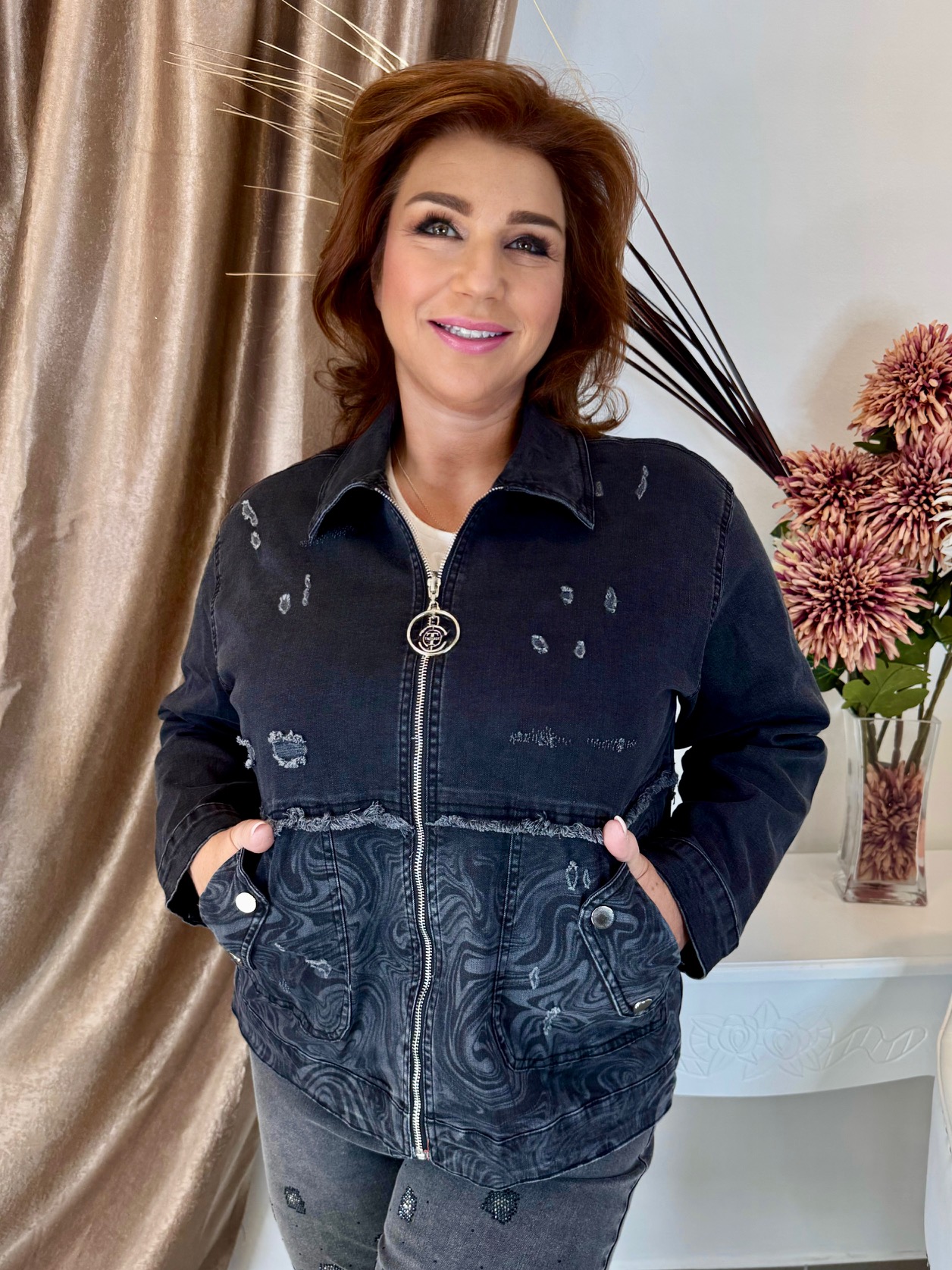 2025.03.23.Zippes elasztikus koptatott sötétszürke farmerdzseki