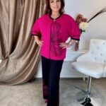 Csinos elasztikus pink szett virágmintával