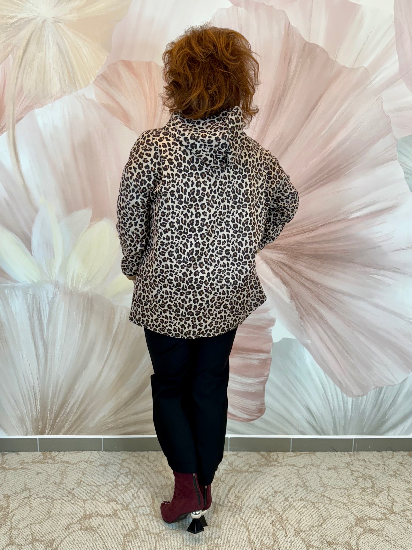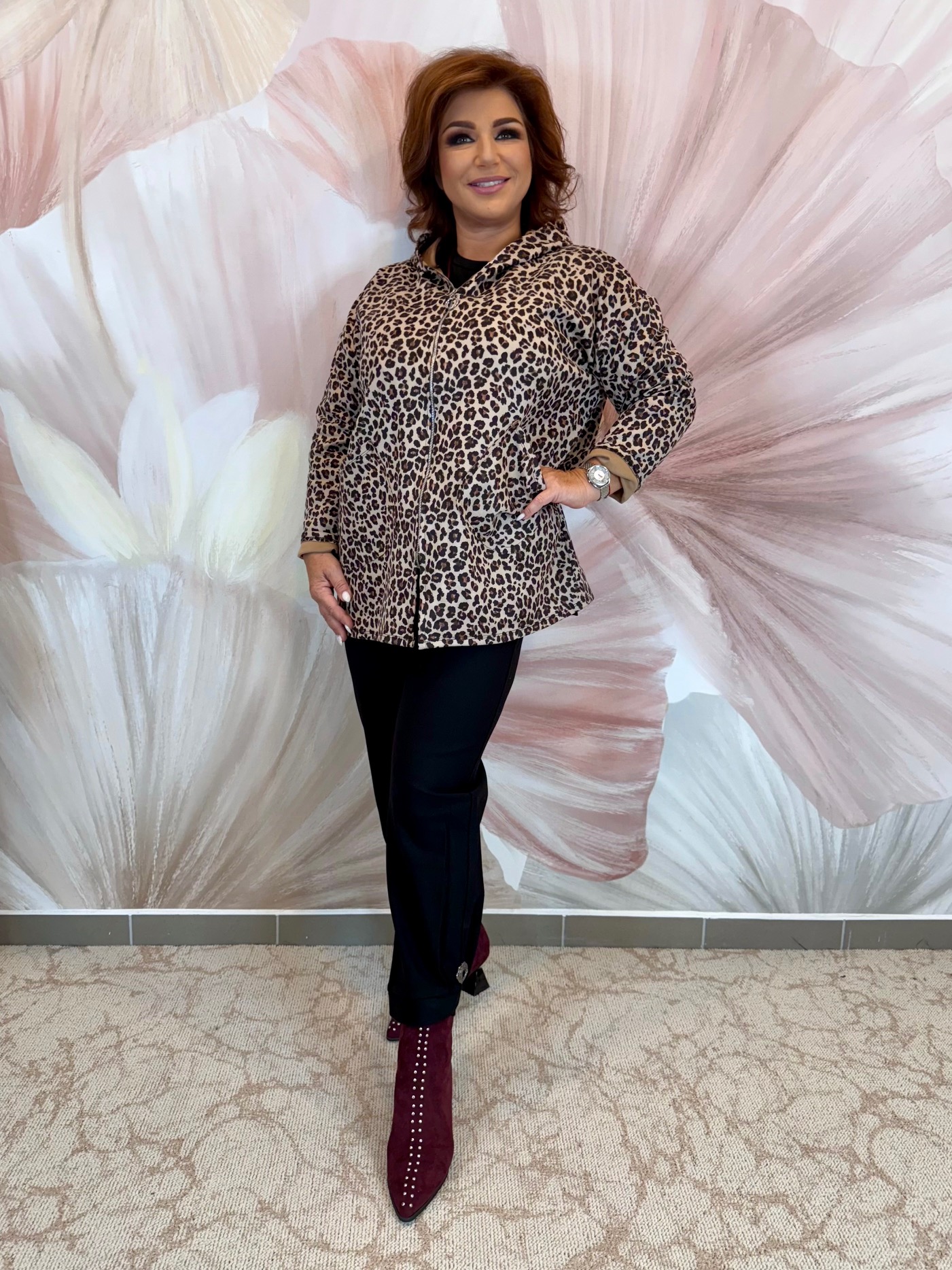 Zippes hasított textilbőr kiskabát – ocelot mintás