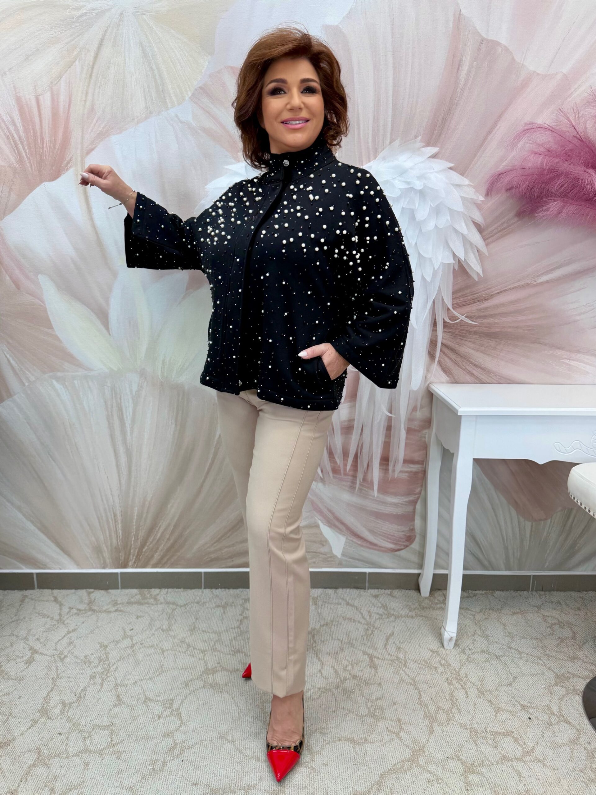 Csinos fekete-bézs ballonkabát
